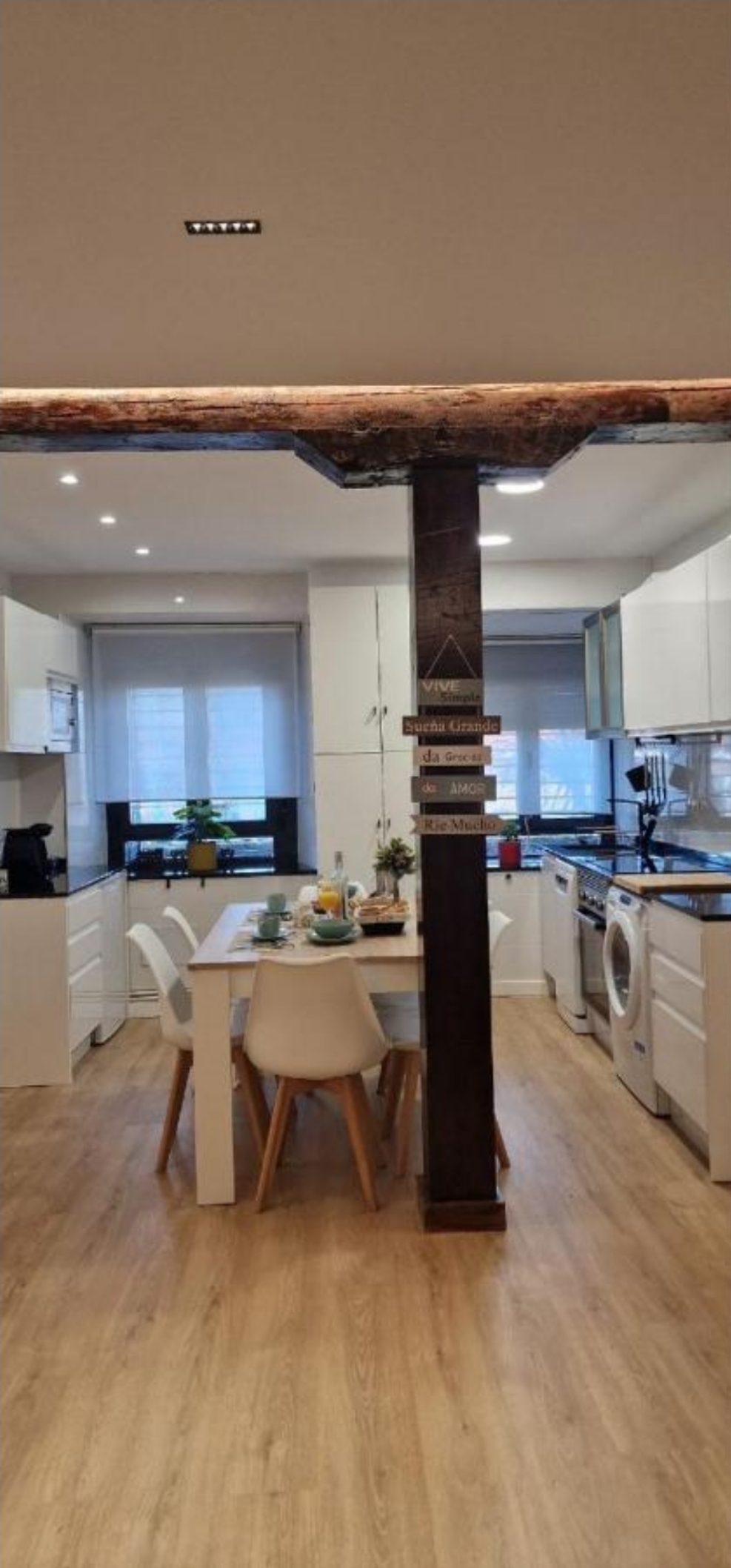 Al cruzar la puerta del Apartamento La Carola, descubrirás un espacio donde la modernidad y la calidez se dan la mano. Hemos diseñado cada estancia pensando en tu confort, aprovechando la luz natural que inunda el salón y cuidando cada detalle decorativo para que te sientas en un auténtico hogar, no solo en un alojamiento de paso.